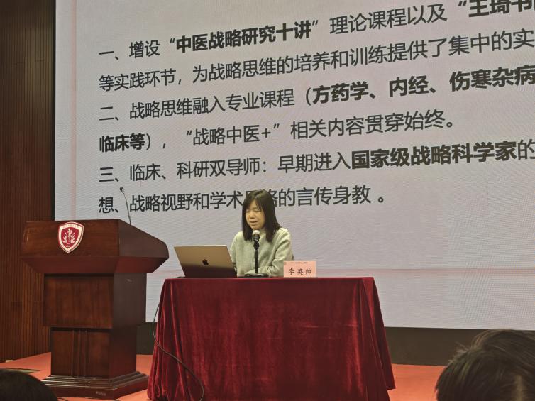 讲座结束后,李英帅教授开展了“王琦班”招生宣讲,详细介绍了以王琦院士学术思想为核心的“王琦班”培养方案。该班将依托ok138cn太阳集团优质资源,通过开设中医战略思维的相关课程、融合王琦院士学术思想的专业课程、以及特色的实习实践安排等培养模式,致力于培养具有理论产出的中医临床家具备战略思维的中医科学家