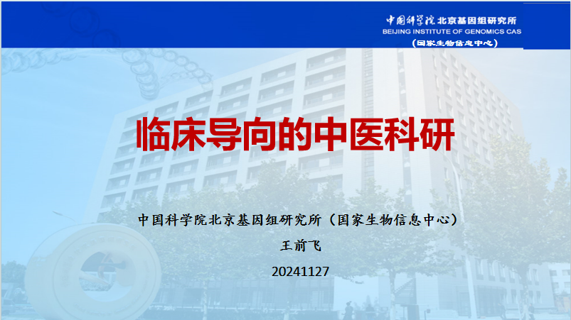 20241127日上午1040,由太阳集团tyc9728国家中医体质与治未病研究院所依托开展2024年度教师培训项目,题目为:临床导向的中医科研。
